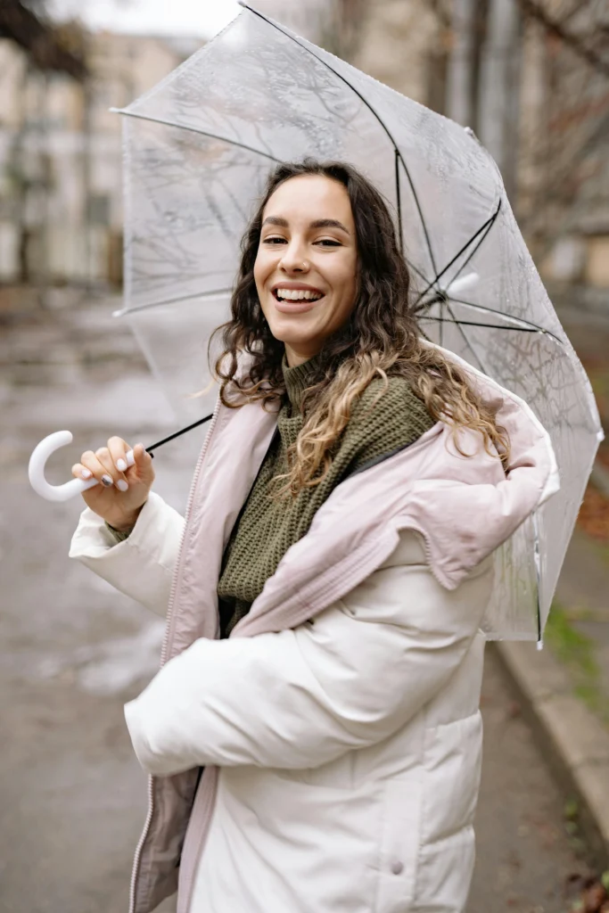 - Clear Accessory: Carry a clear umbrella to protect your hair without blocking your light.
