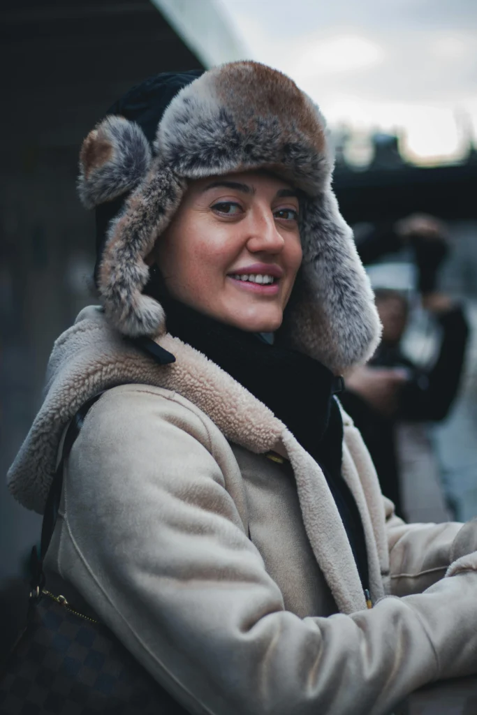 How to get the look: Embrace the texture! Layer a shearling or teddy coat over simple base layers. The key piece is a playful, warm trapper hat—look for one with faux fur details around the face for ultimate warmth and style.
