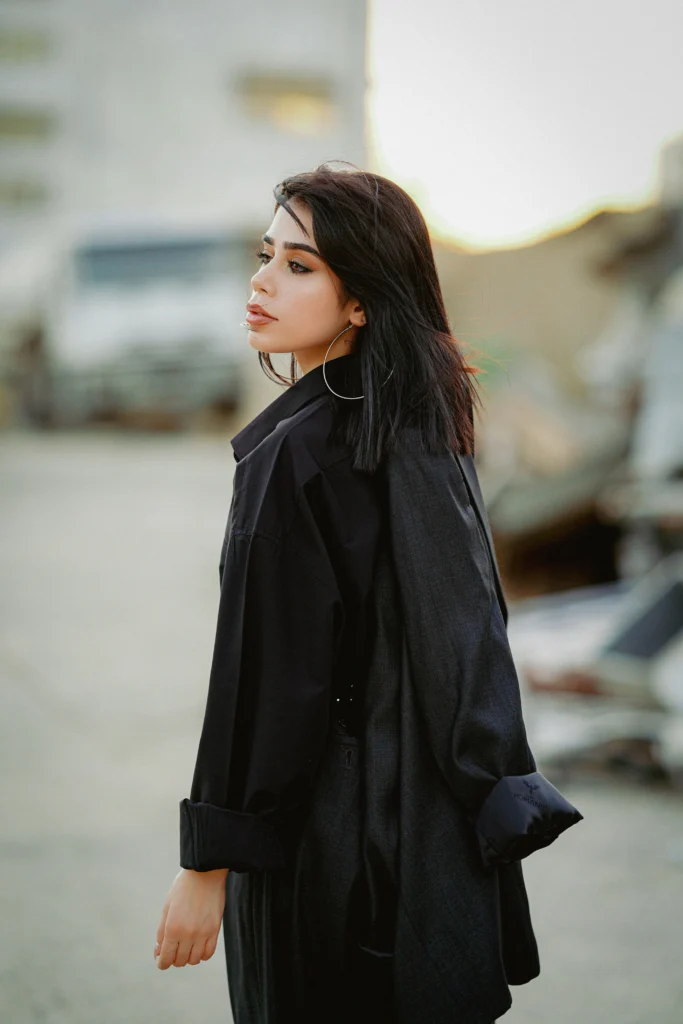 This is how you do effortless cool. The oversized black shirt or light jacket draped casually is the essence of relaxed style. It’s comfortable yet completely stylish, proving that pieces don’t always have to be fitted to look incredible. Paired with simple hoop earrings and soft, flowing hair, this look is easy, breezy, and so chic.