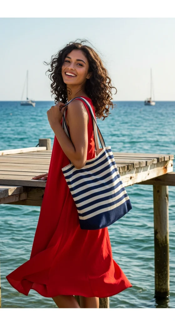 Believe it or not, red and nautical go hand-in-hand! A red and white striped dress is a classic. Or, take a solid red dress and pair it with navy blue accessories – think a navy blazer, a striped tote bag, and white espadrilles. A cute red bandana tied in your hair can add that perfect sailor-inspired touch. Ahoy, gorgeous!