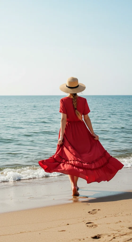 For those sun-drenched days or a relaxed evening out, grab a flowy, bohemian-inspired red maxi dress. Look for details like ruffles, lace inserts, or an off-the-shoulder silhouette. Team it with strappy flat sandals or espadrilles, a wide-brimmed straw hat, and some stacked bracelets. A woven tote bag will perfectly complement this free-spirited aesthetic. Hello, summer vibes!