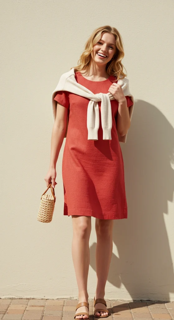 Yes, you can absolutely do sporty with a red dress! Choose a more relaxed, t-shirt style red dress or a comfortable knit midi. Pair it with fresh white sneakers and a denim jacket tied around your waist or worn. A baseball cap can add an extra athletic touch. This look is all about comfort without sacrificing style – ideal for running errands or a casual weekend outing.
