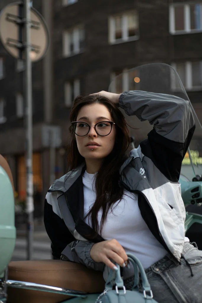This look is all about that cool, urban vibe. The reflective material on the gray and black windbreaker jacket is so on-trend, giving a fresh feel to a classic jacket style. Worn over a white top and paired with comfy, light-wash mom jeans, it’s the ultimate cool-girl outfit. This is what you wear when you want to look effortlessly stylish while exploring the city.