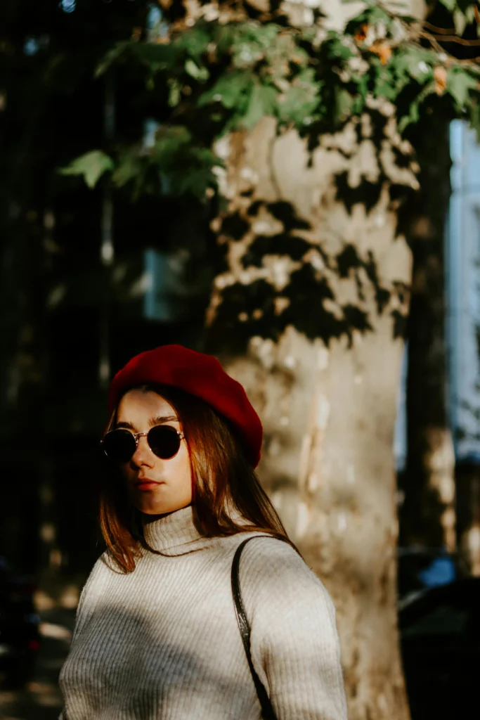 This outfit is pure French girl fashion. The creamy knit turtleneck is simple and elegant, making the deep red beret the star accessory. A beret is a super easy way to add a sophisticated, artistic flair to any cold-weather look. Plus, those round sunglasses give it a perfectly mysterious, cool-girl vibe!